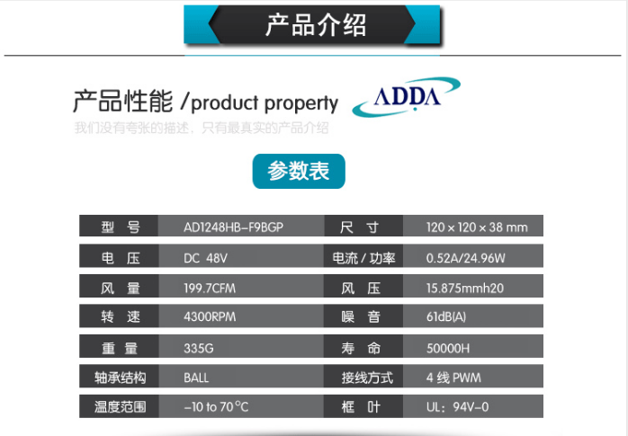 ADDA AD1248HB-F9BGP DC48V 0.52A 12CM4線PWM散熱風(fēng)機