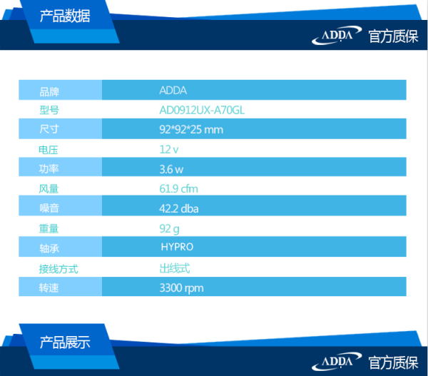ADDA AD0912UX-A70GL DC12V 0.30A 9cm 2線風(fēng)機(jī)