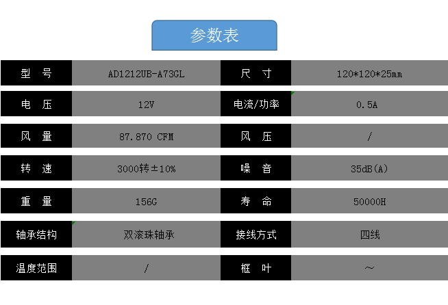 ADDA協(xié)喜 AD1212UB-A73GL 12V 0.5A 4線PWM風機
