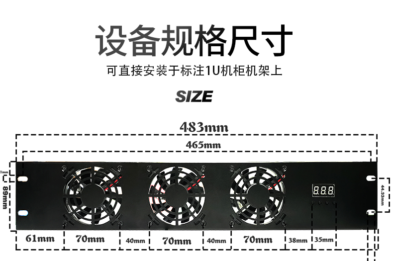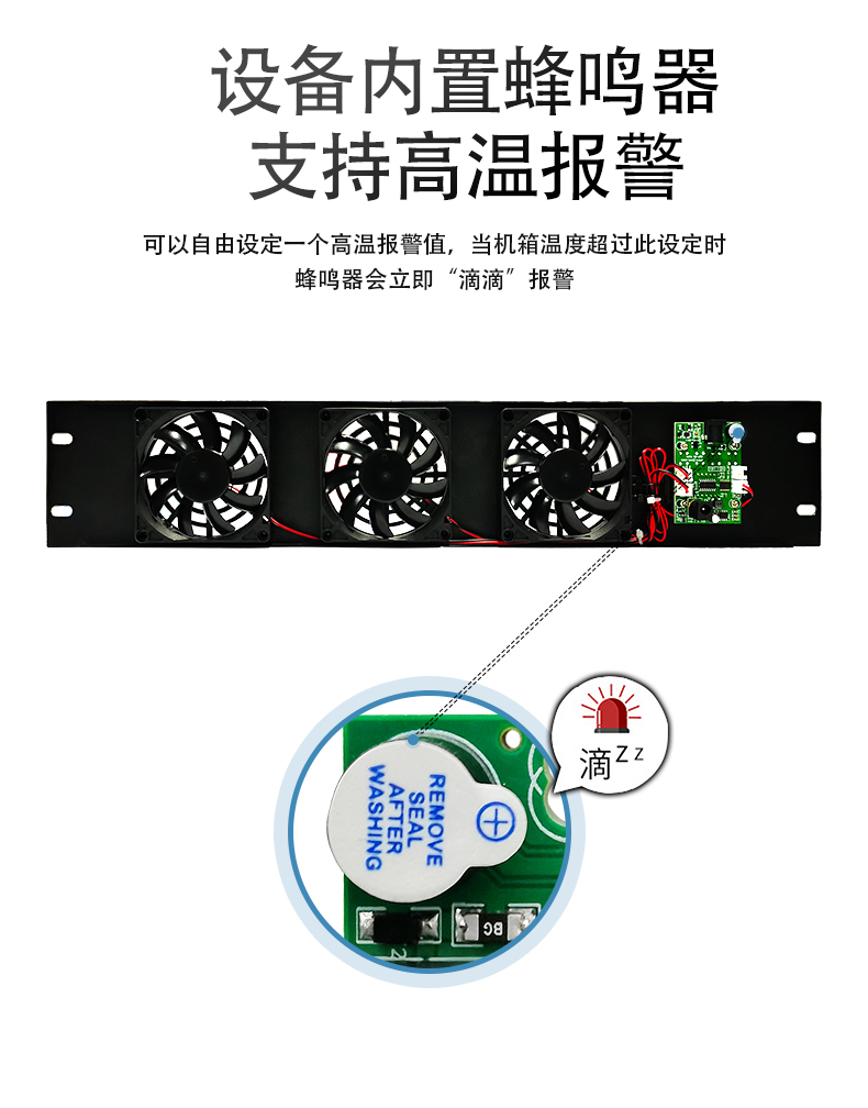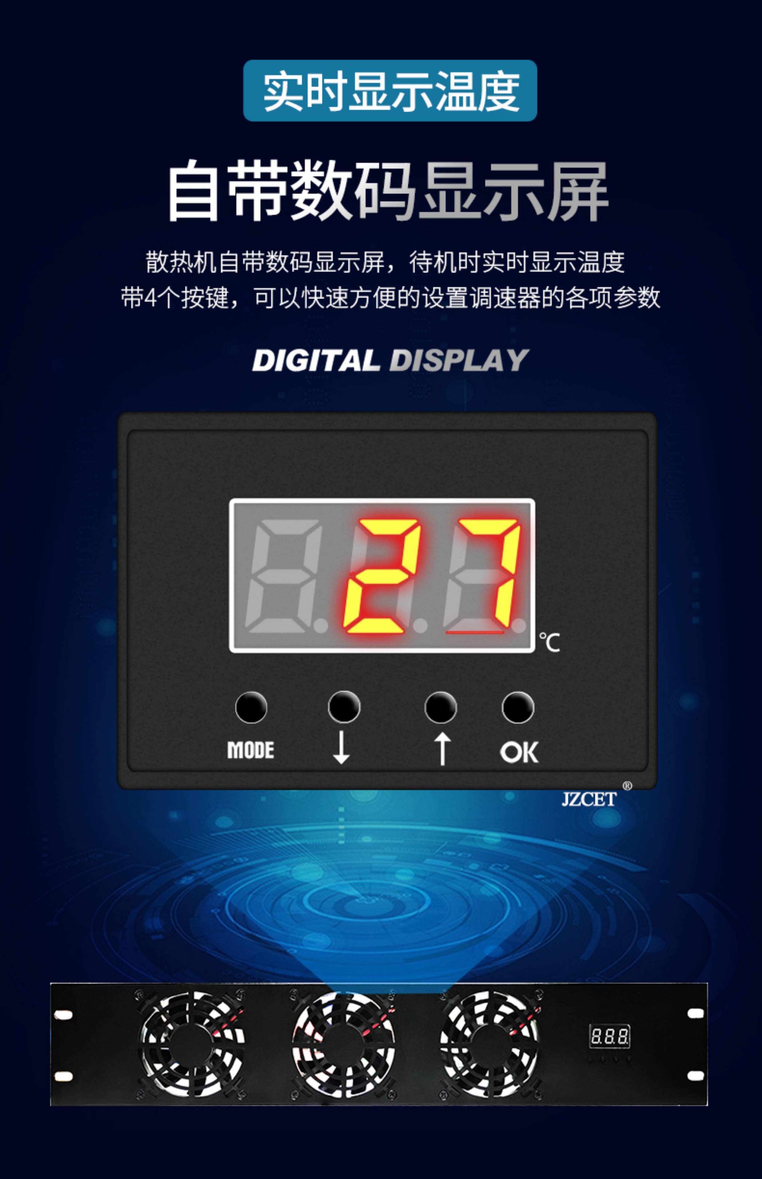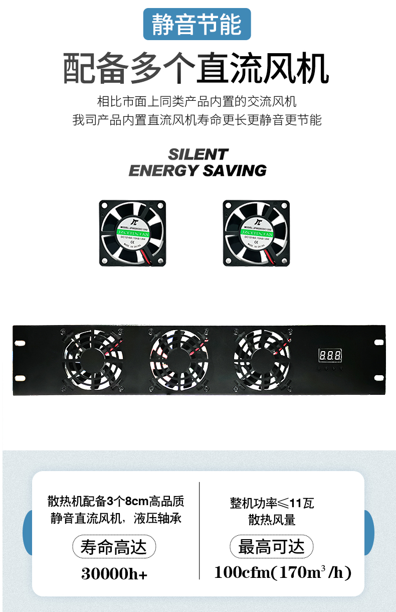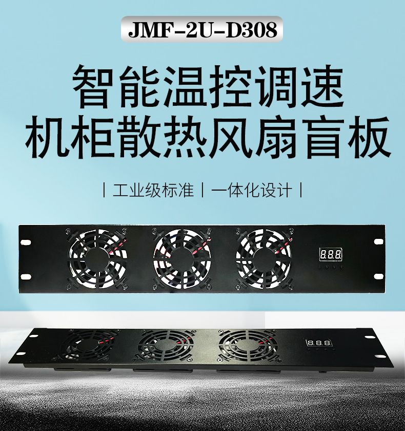 JMF-2U-D308型機(jī)柜溫控風(fēng)扇單元為我司原研產(chǎn)品,2U標(biāo)準(zhǔn)尺寸,內(nèi)置 3 個大風(fēng)量直流散熱風(fēng)機(jī),內(nèi)置蜂鳴器支持高溫報警,設(shè)備主要用于機(jī)箱機(jī)柜的抽/排風(fēng)散熱。