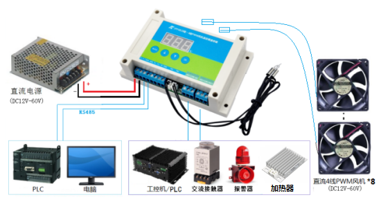 另集成一路獨(dú)立于風(fēng)機(jī)控制的溫控開(kāi)關(guān)(繼電器),溫控參數(shù)可以自由設(shè)置,此功能可應(yīng)用